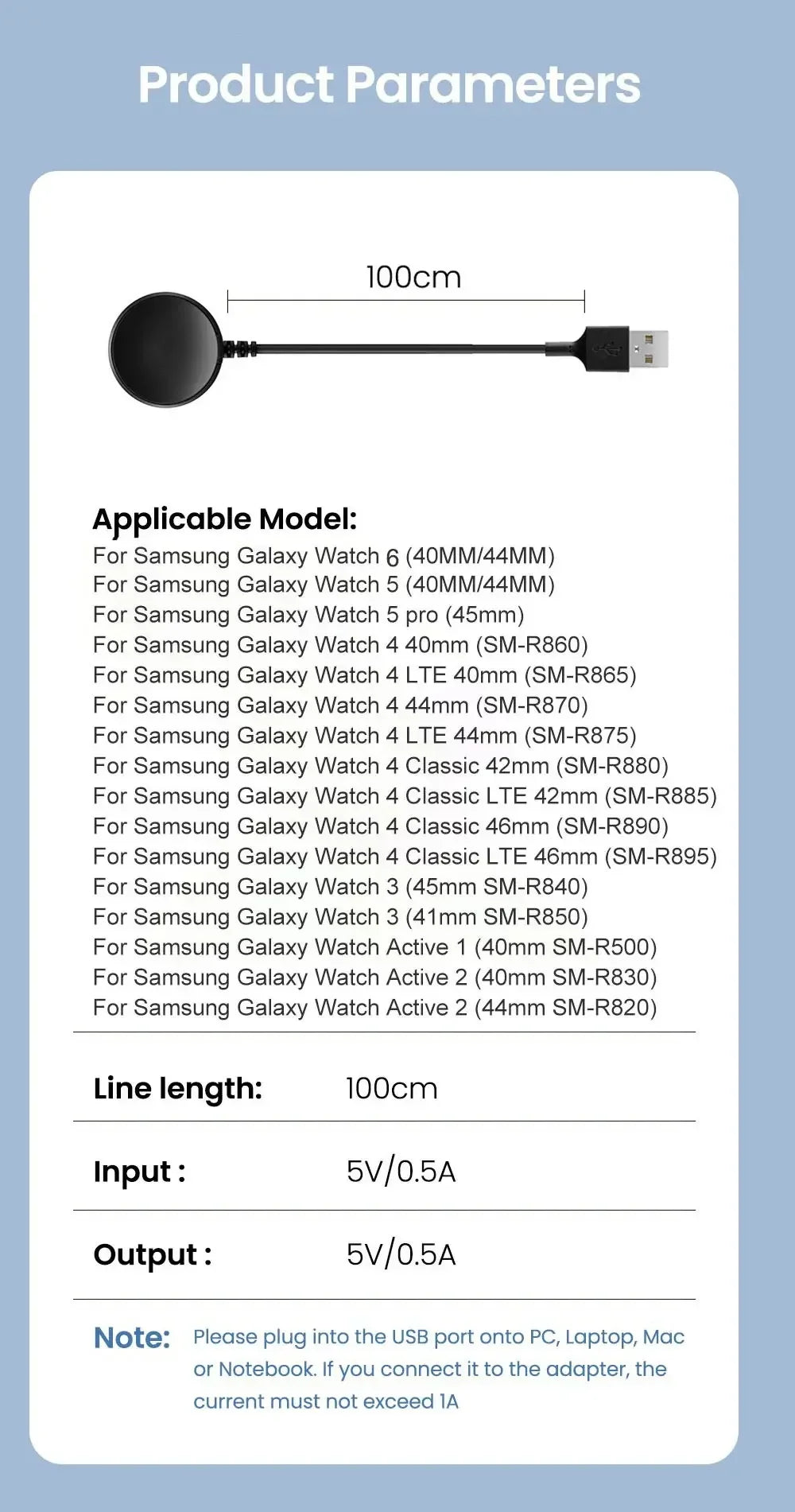 Charge your Samsung Galaxy Watch effortlessly with this Magnetic Wireless Watch Charger, designed for Galaxy Watch 3, 4, 5, 5 Pro, 6, 7, and 8, including Active 2 models. This portable fast charging dock combines convenience, safety, and style in one compact solution. The magnetic alignment ensures your watch snaps into place perfectly every time, providing stable and efficient charging. Made with flame-retardant ABS+PC materials and soft TPE wiring, it is safe, durable, and comfortable to handle. Equipped with an advanced Nanxin 5002 MCU chip and South Korean imported IC, it delivers faster charging with lower heat, keeping your watch powered up without worry.
