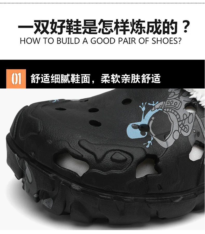Crafted with a soft short plush insole and lining, these clogs provide cushioned support and gentle warmth, while the EVA outsole ensures lightweight durability and non-slip traction. The faux fur upper with injection-molded EVA construction gives a concise, stylish look, making them suitable for men who want both function and fashion. With sizes up to EU 47, they fit larger feet comfortably, providing a true-to-size fit for all-day wear.