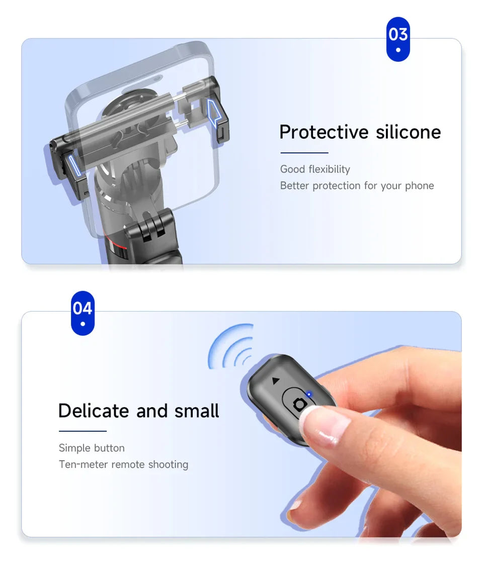 🔘 Bluetooth Remote: Take photos or start videos remotely for solo or group shots.