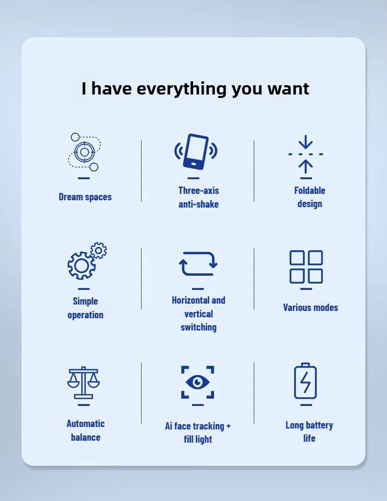 Compatible with smartphones 5.5–9cm wide and supporting vertical shooting, this gimbal is an essential tool for anyone serious about mobile videography. Lightweight, precise, and easy to use, it transforms your phone into a professional filming device.