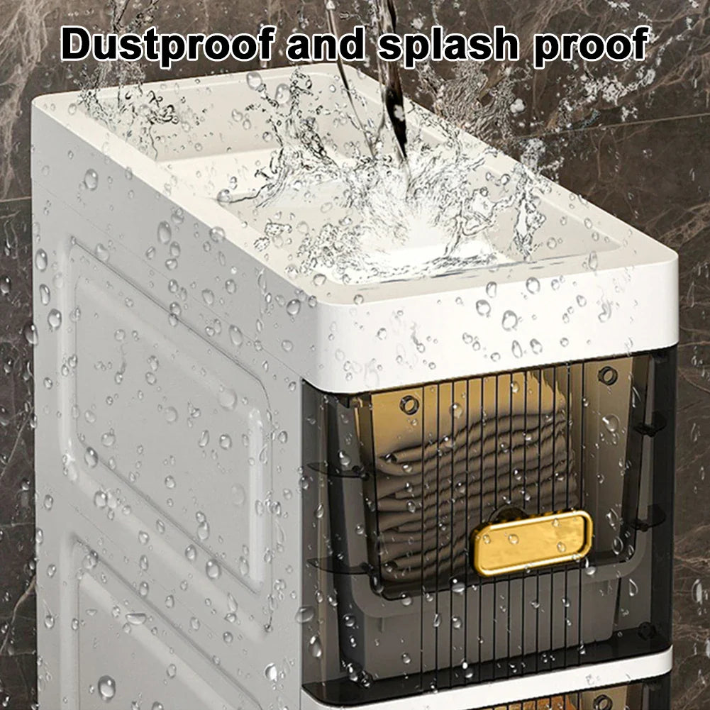 Made from durable PVC plastic, this light-luxury bathroom organizer is waterproof, easy to clean, and perfect for humid environments. Its slim crevice-friendly design fits seamlessly beside the toilet, next to the sink, or in any tight space—giving you the perfect spot for toilet paper, cleaning supplies, toiletries, towels, and more.