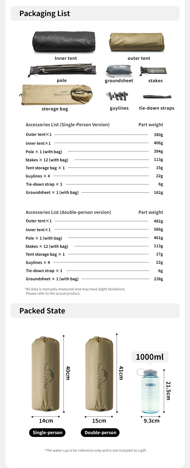 Naturehike Mongar UL Hiking Tent – 1-2 Person Ultralight Waterproof 15D Nylon Backpacking Tent