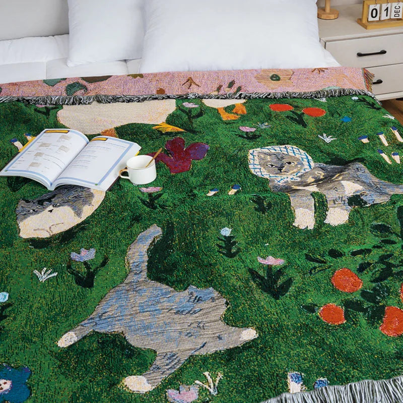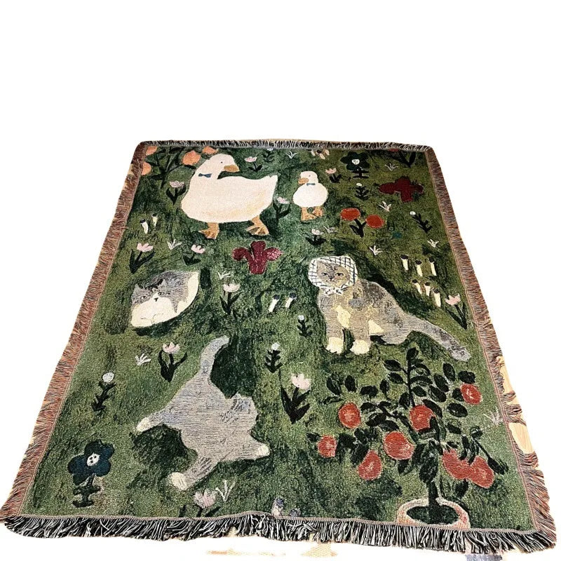 Animal Sofa Blanket Cover – European Village Cartoon Tapestry for Home Decor, Sofa, Bed & Camping