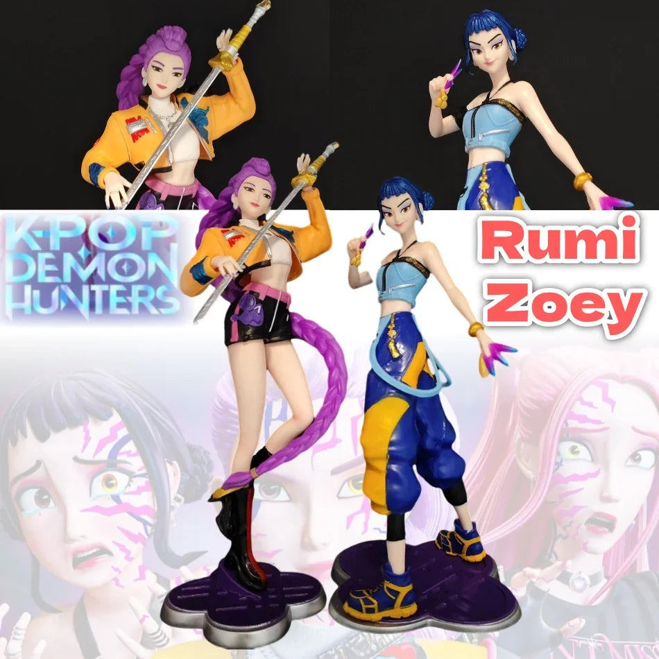 Bring the excitement of your favorite K-pop anime universe to life with the New K-Pops Demons Hunters Anime Figures! Featuring Rumi, Zoey, Mira, Saja, and Boys, these 22cm action figures are perfect collectibles for fans who love detailed craftsmanship and cosplay-inspired designs. Made from high-quality PVC, each figure captures the unique personality and style of the characters, making them a standout addition to any shelf, desk, or display case.