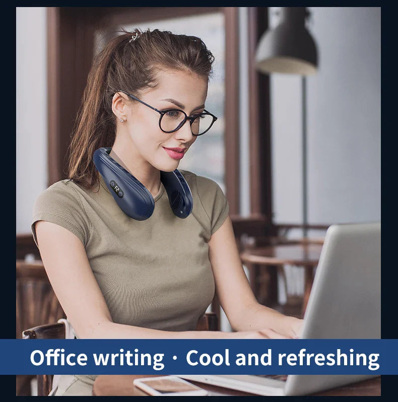 Stay cool on the go with the CREAROMA Portable Neck Fan—a revolutionary wearable air conditioner designed to keep you refreshed outdoors or during any activity. Equipped with a 5200mAh rechargeable battery and semiconductor cooling technology, this neck fan delivers turbo cold air to the top, back, and sides, chilling you down up to 15°C in seconds. Lightweight and ergonomically designed, it provides all-day comfort while offering silent operation and three-speed adjustable airflow. With memory gear functionality, your fan remembers your preferred setting every time you power it on. Perfect for summer outings, sports, travel, or office use, this neck fan brings a new level of personal cooling wherever you go.