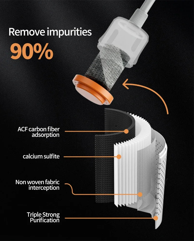 Clean & Safe: Built-in activated carbon filtration purifies water for safe, hygienic use.