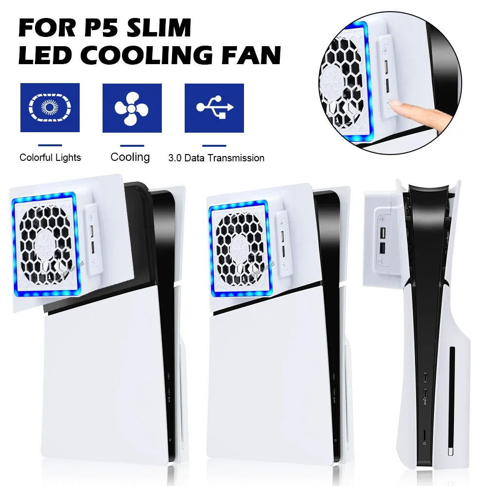 NEW Side-Mounted Cooling Fan for PS5 Slim – LED Light & 2 USB Ports Game Console Cooler Accessory