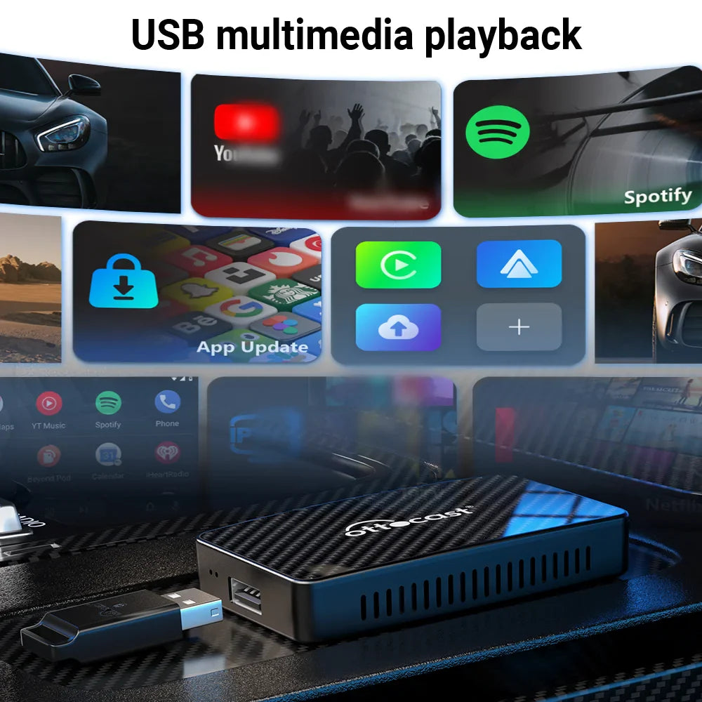 Upgrade your car’s entertainment system with the Ottocast Play2video Pro Car Android AI Box—the ultimate wireless CarPlay and Android Auto adapter for seamless in-car connectivity. Specifically designed for cars with factory-fitted wired CarPlay, this compact device transforms your wired system into a wireless smart hub. Enjoy your favorite apps like Netflix, YouTube, Spotify, Prime Video, and IPTV directly from your car’s dashboard, making every journey more entertaining.