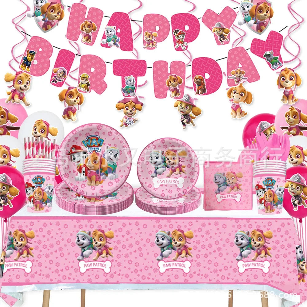 Features: Cartoon animal theme, disposable tableware, balloons, stickers, toys, Skye-themed décor