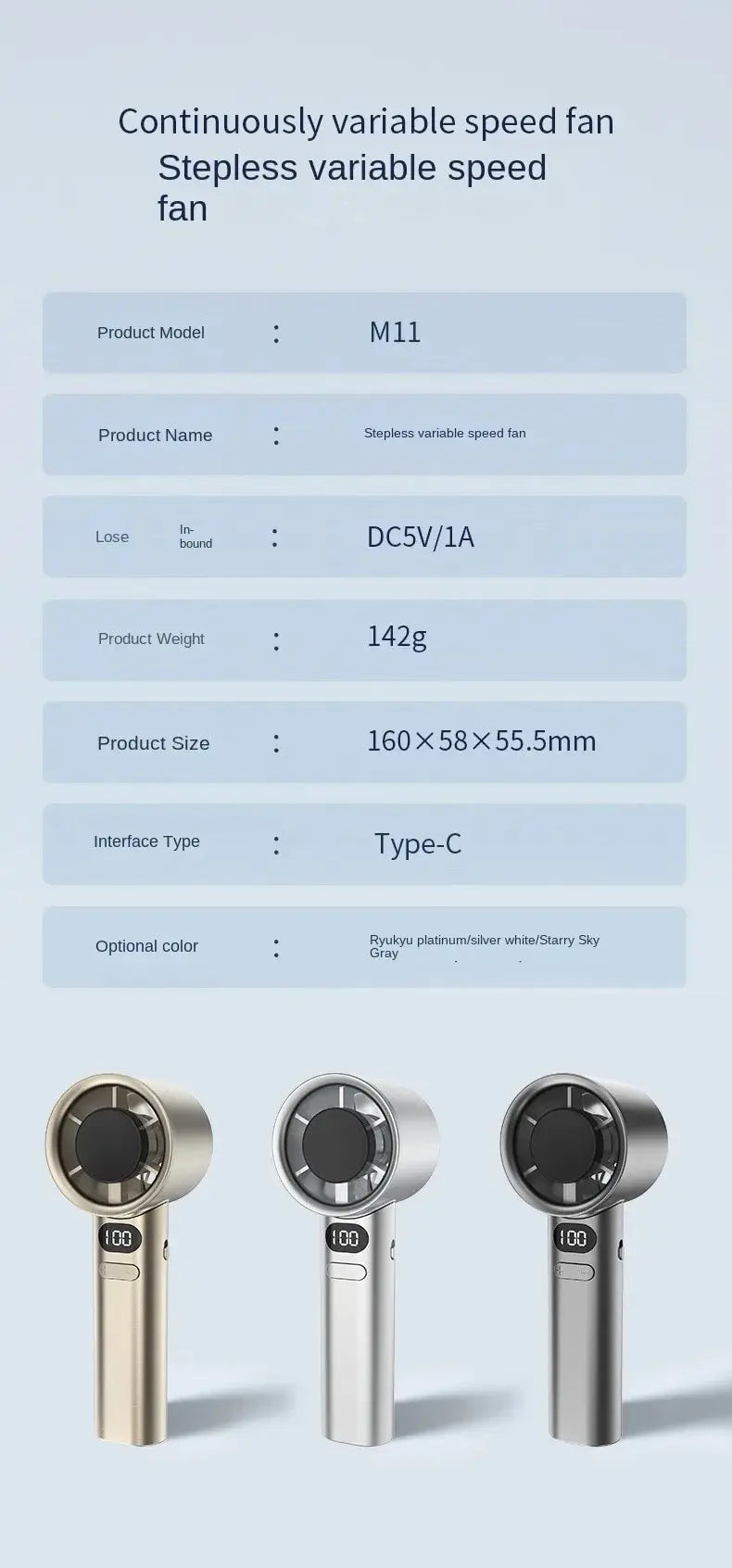 Portable Mini Bladeless Hand Fan – USB Rechargeable Handheld Personal Fan with 120-Speed High-Speed Airflow, Electric Cooling Fan