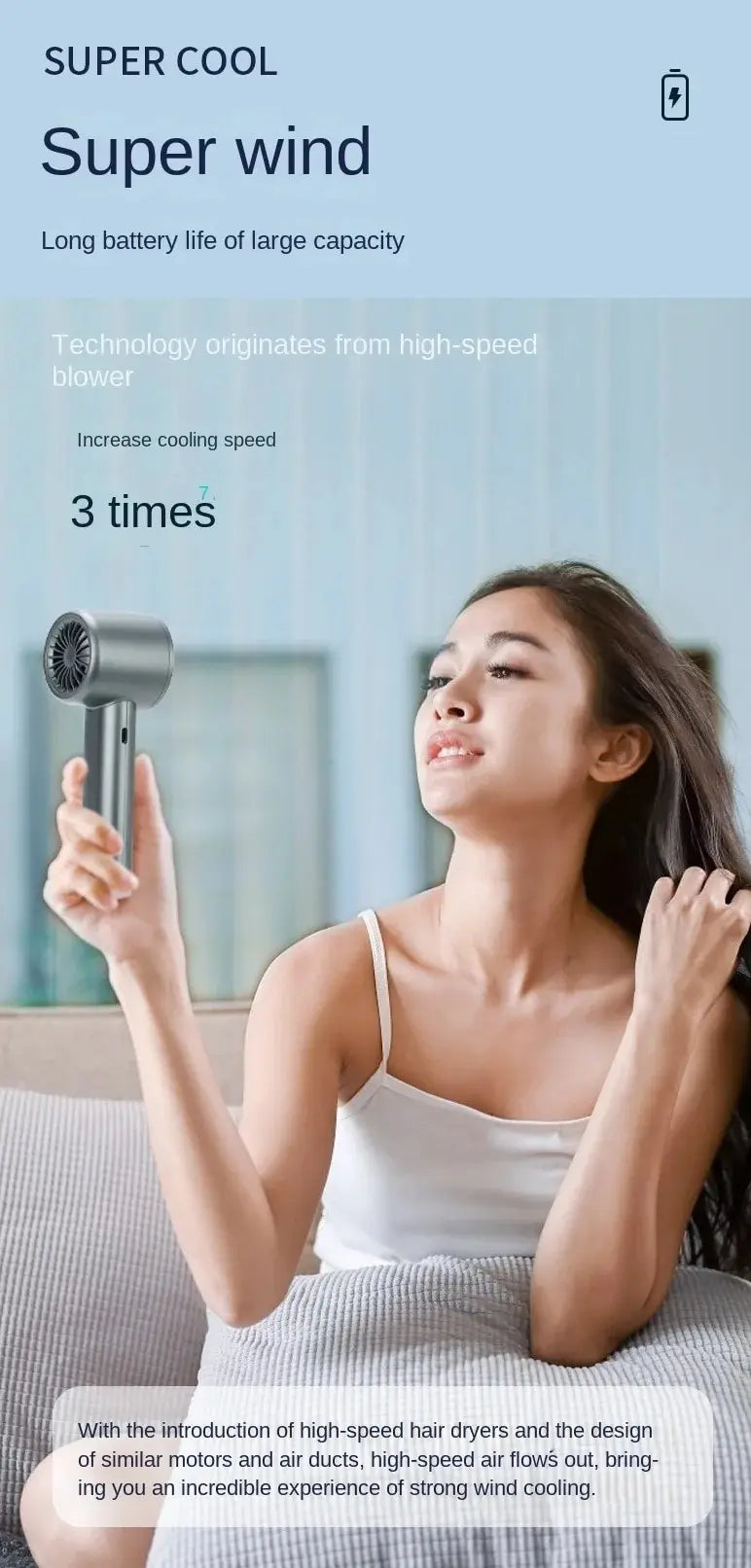 Keep cool anytime, anywhere with the Portable Hand Fan – Mini Bladeless High-Speed Fan! With 120 wind speeds, this ultra-compact, USB rechargeable fan delivers powerful airflow while staying whisper-quiet, making it perfect for personal use, travel, office, or outdoor activities. Its sleek bladeless design ensures safety and easy cleaning, while the high-speed motor gives efficient cooling in a small, portable package. Powered by a rechargeable battery, this fan is eco-friendly, convenient, and ideal for on-the-go comfort. A must-have gadget for hot days or precise cooling needs, including delicate tasks like drying eyelashes or applying makeup.