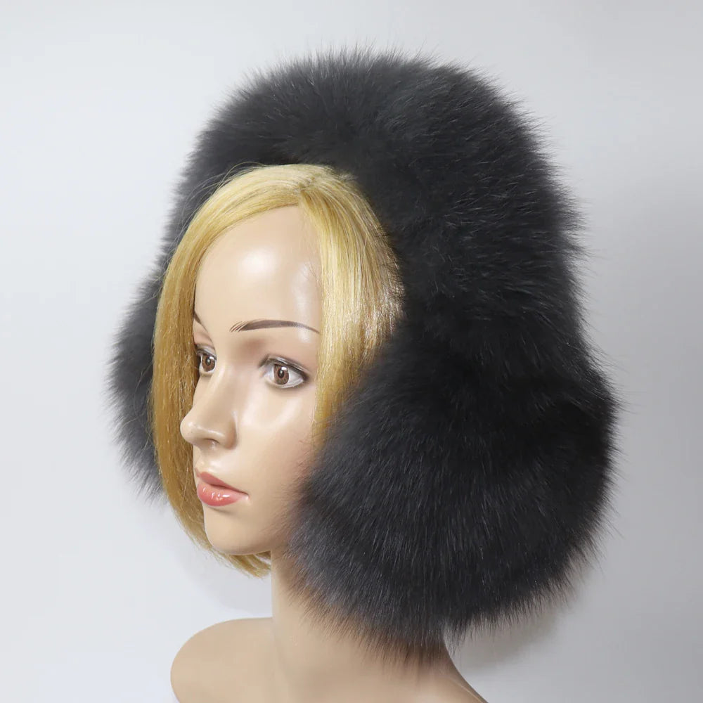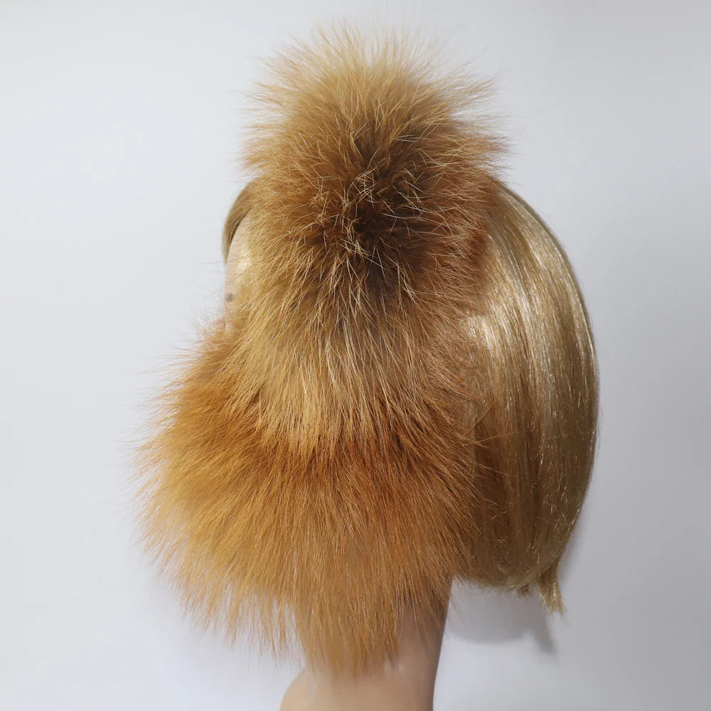 Real Fox & Raccoon Fur Earmuffs – Warm Winter Ear Warmer for Women and Girls, Plush Genuine Fur Accessory