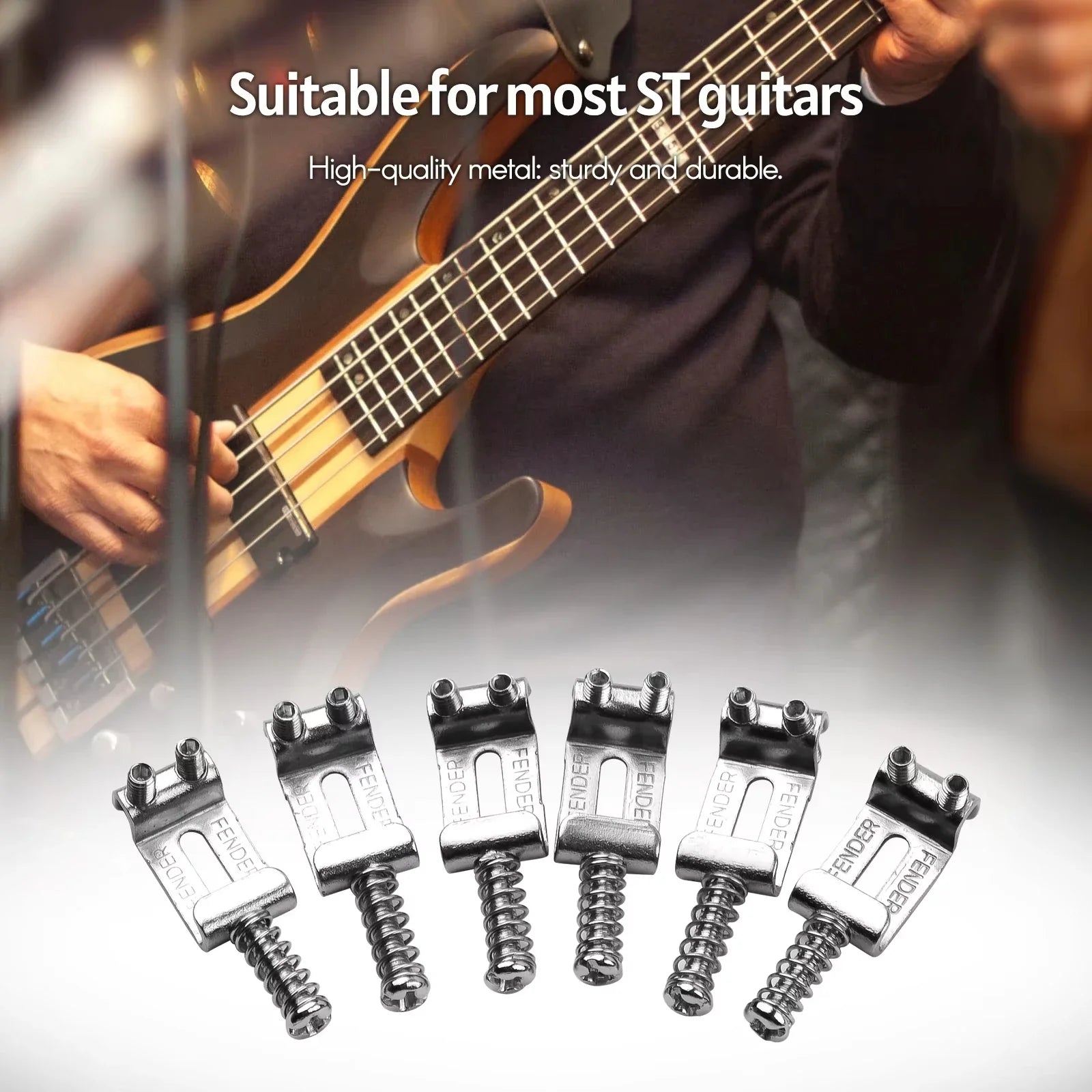 Upgrade your guitar’s performance with the 6PCS Roller Tremolo Bridge Saddles with Wrench by Miwayer! Crafted from precision zinc alloy, these saddles are designed for Fender Stratocaster, Telecaster, and ST-style electric guitars, delivering smooth string movement, improved tuning stability, and enhanced sustain.