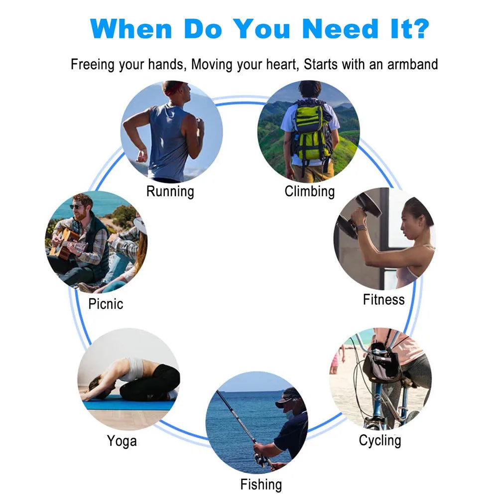 The 360° rotatable design lets you easily view your phone for GPS navigation, fitness tracking, or music control while keeping your hands free. With built-in card pockets, you can carry essentials like ID, credit cards, or cash without needing extra bags. Designed for comfort, durability, and convenience, this wristband ensures your phone stays safe, accessible, and secure during any activity.