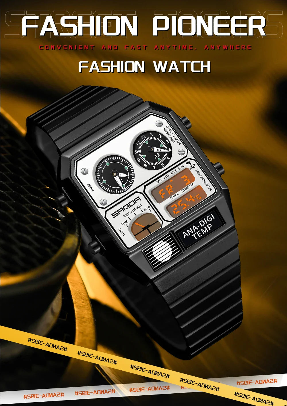 SANDA 3192 Men’s LED Square Watch — Youth Casual Multi-Function Stopwatch Thermometer Chronograph