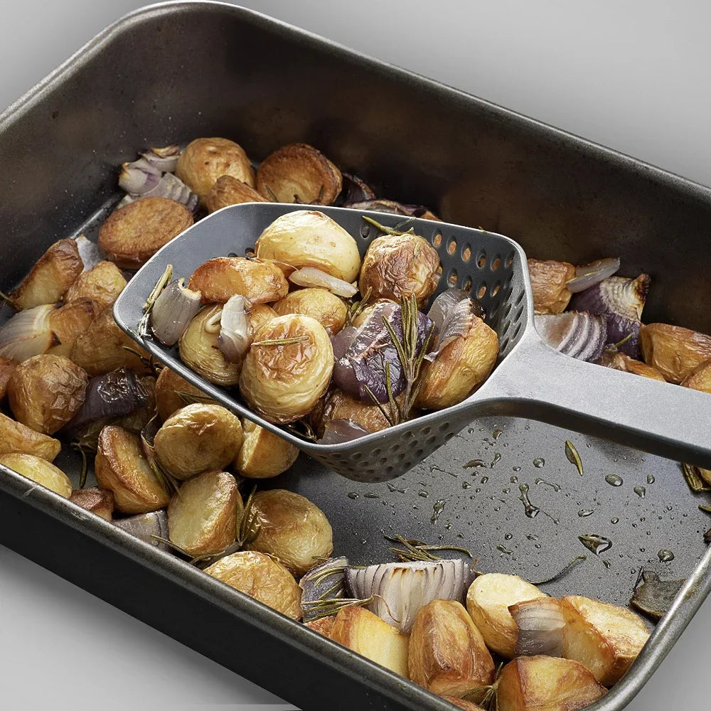Multi-Functional: Scoop and drain food directly from pans, pots, or ovens — ideal for frying, boiling, or straining soups and stews.