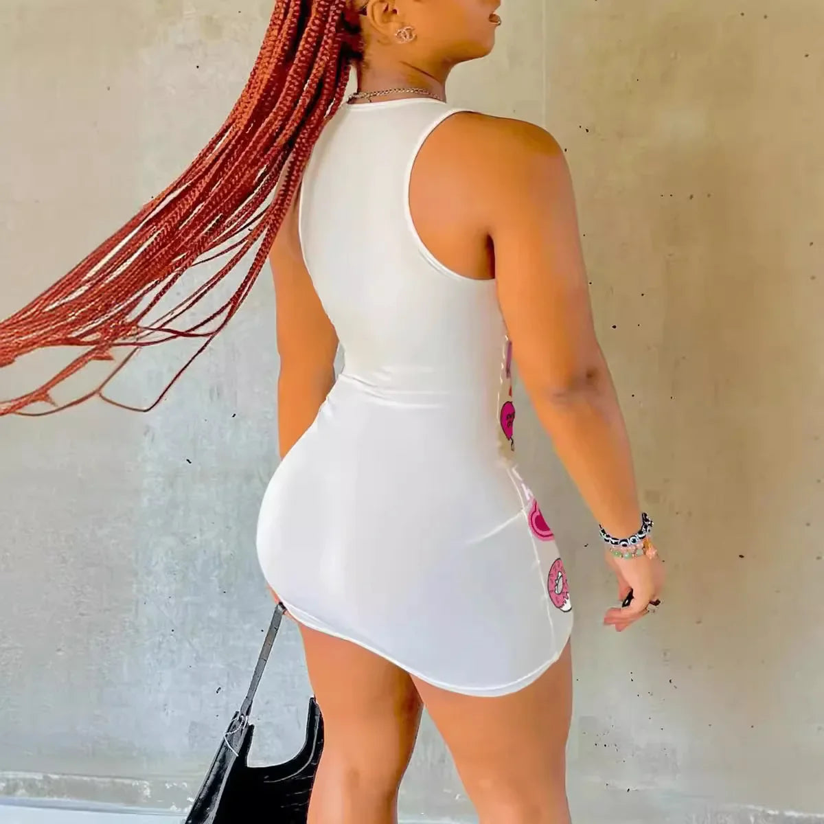 Women’s 2025 Summer Sexy Tank Bodycon Dress – White Printed Mini Slim Fit Dress