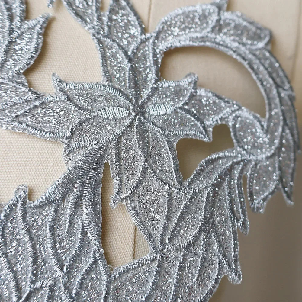Silver Baroque Sequin Flower Applique – Embroidered Iron-On Patch for Wedding & DIY Crafts