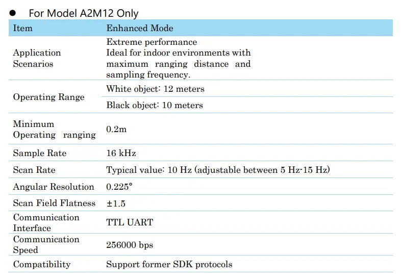 Maximum scanning range: 12 meters