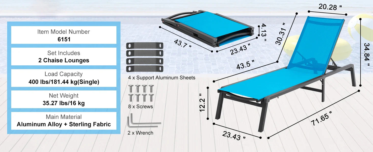 Sturdy & Rust-Resistant: Durable aluminum frame supports up to 400 lbs, with waterproof and wear-resistant Sterling fabric for long-lasting comfort.