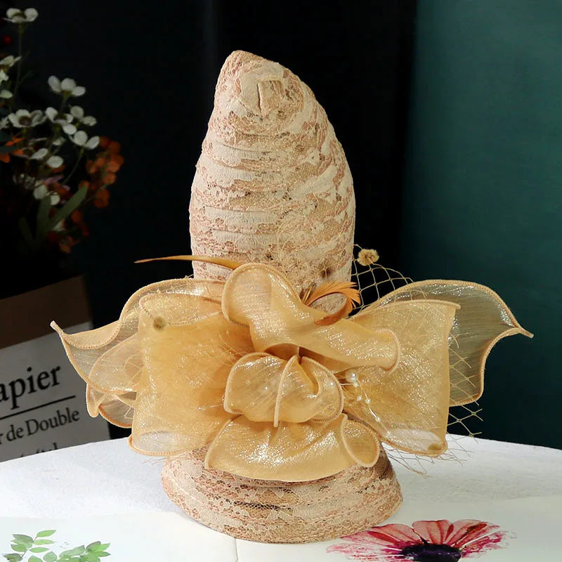 Women’s Elegant Mesh Sun Hat – Pearl Flower Foldable Beach Hat with Large Brim, Lace & Breathable Design for Spring and Summer