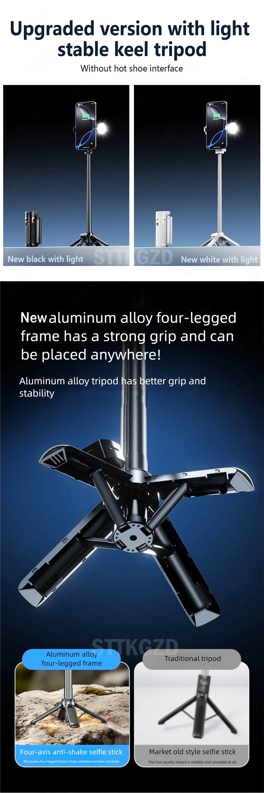Capture perfect selfies, videos, and live broadcasts anytime, anywhere with the STTKGZD Super Mini Selfie Stick. This ultra-compact 4-in-1 gadget combines a selfie stick, phone holder, tripod, and handle assist into one portable design, making it your ultimate photography companion.
