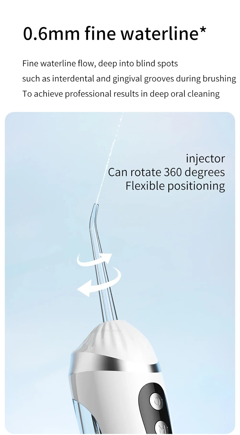 Its compact and lightweight design makes it perfect for home use, travel, or office, while the waterproof body ensures safe and convenient cleaning every time. With a 100–199ml water tank, you can enjoy extended flossing sessions without constant refills. Rechargeable and easy to use, this oral irrigator is your perfect companion for maintaining fresh breath, healthy gums, and sparkling teeth.