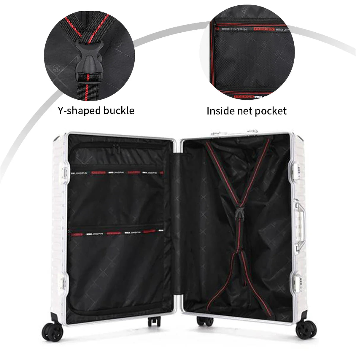 Aluminum Frame Rolling Luggage – 20/24/26/28 Inch Suitcase with USB Port, Combination Lock & Wheels
