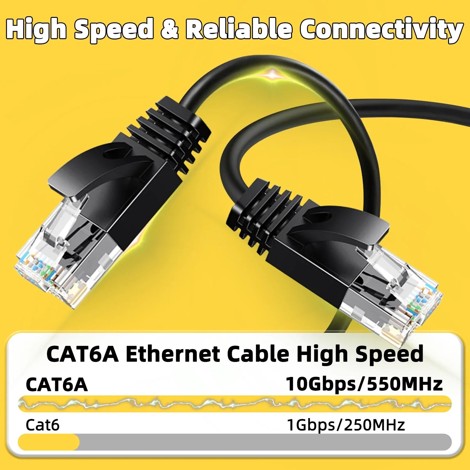 Ultra Slim Cat6A Ethernet Cable – 10Gbps 550MHz UTP LAN Patch Cable for Router & Modem