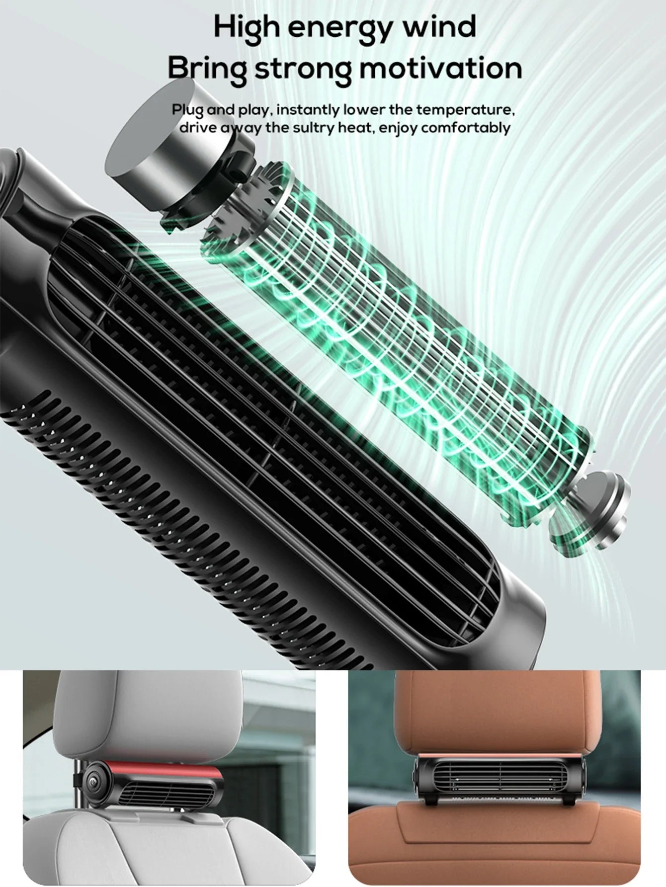Stay cool on the road with the Vissko Portable Car Seat Fan, designed for both front and rear passengers. This USB-powered headrest fan easily attaches to your car seat with an adjustable strap, providing a refreshing airflow wherever you need it.