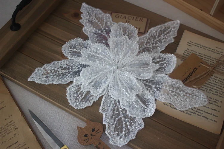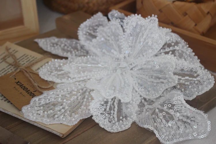 White Multi-Layer Lace Sequin 3D Flower Patch – DIY Clothing Decorative Applique