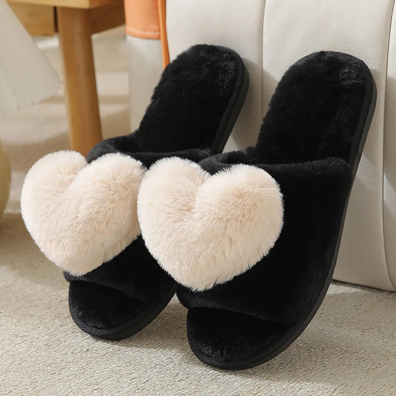 Women’s Indoor Home Slippers – Warm, Non-Slip Plush Bedroom Shoes with Cute Heart Pattern for Autumn & Winter