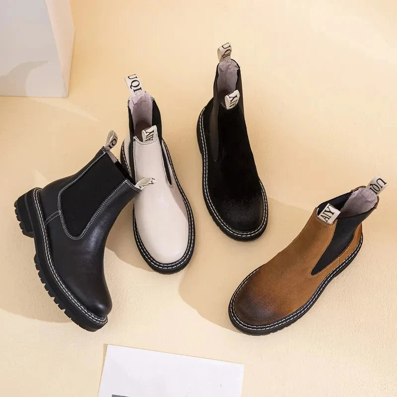 Women’s 2025 Genuine Leather Chelsea Boots – Thick-Soled Autumn Winter Ankle Short Boots