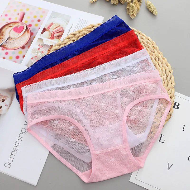 Women’s Low-Rise Lace Mesh Panties – Sexy Transparent Hollow-Out Briefs Lingerie Underwear