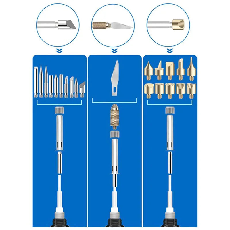 Unleash your creativity with the Wood Burning Carving Pyrography Pen Kit — a versatile electric tool designed for woodworkers, crafters, and DIY enthusiasts. This adjustable temperature pyrography pen allows you to burn, emboss, and carve intricate designs on wood, leather, and other materials with precision. Ideal for creating custom artwork, personalized gifts, or decorative projects, this tool combines the functionality of a soldering iron with the artistry of wood burning.