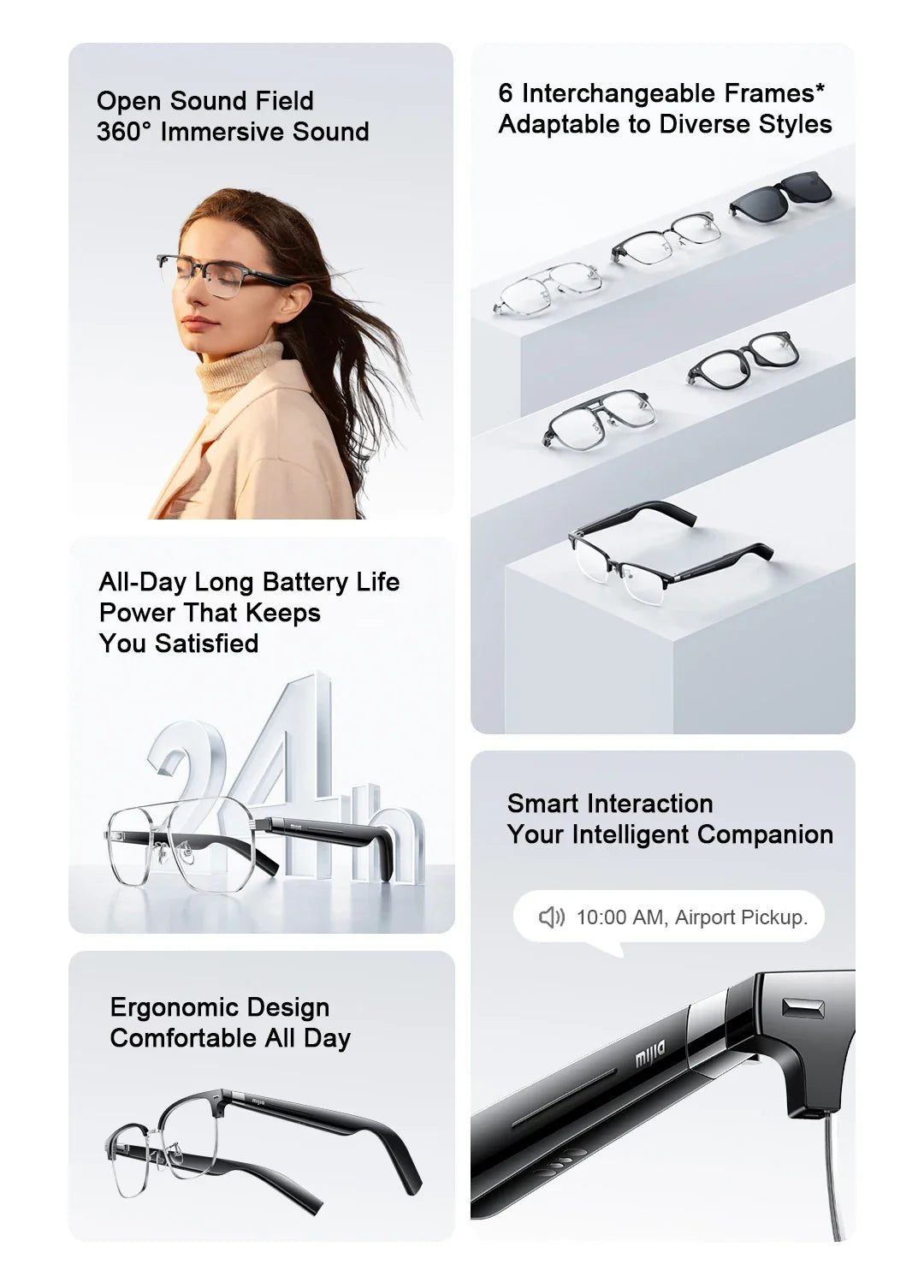 XIAOMI MIJIA Smart Audio Glasses Joyful Edition — Bluetooth 5.2, Detachable Headset, Long Standby, 2h Fast Charge, Anti-Leakage Sound